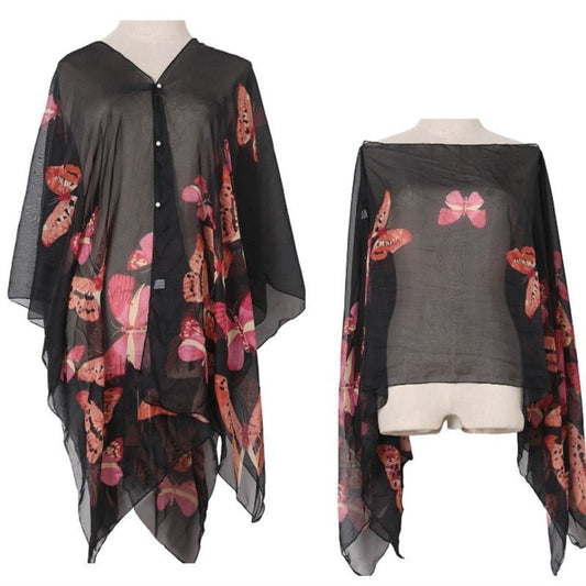 Bernadette - Women's Retro Floral Art Print Casual Cotton And Linen Shirt