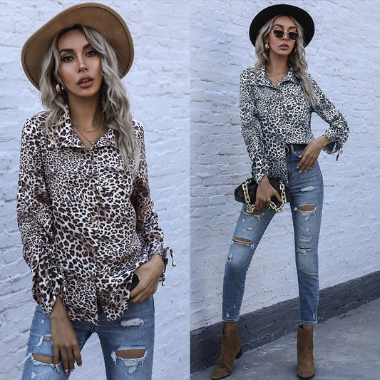 Women's blouse with animal print and fashionable button details WW