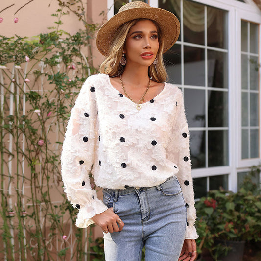 Women's blouse with decorative lace pattern and elegant V-neck WW