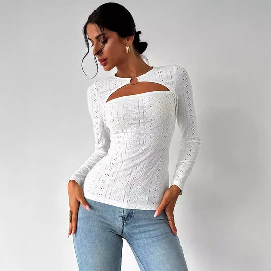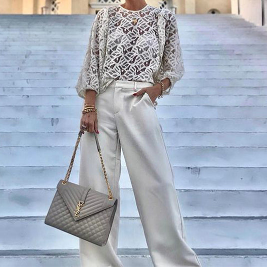 Women's blouse with decorative cut-out and fine lace details W&W