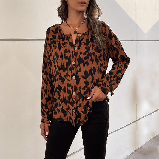 Women's blouse with elegant ruffle details and fashionable leopard print WW