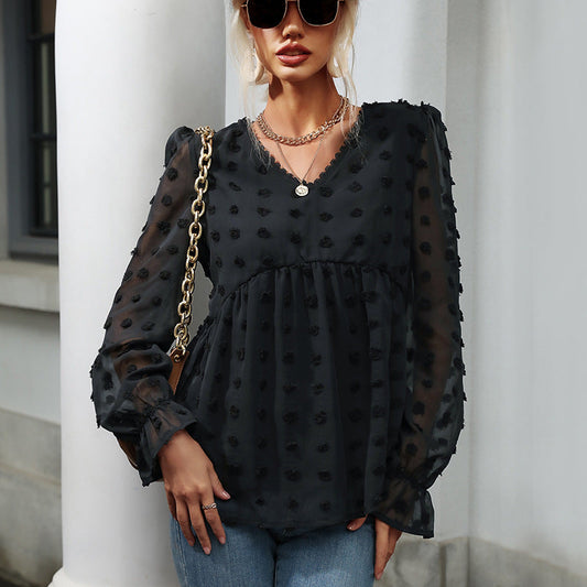 Women's blouse with openwork dots design and elegant puff sleeves WW