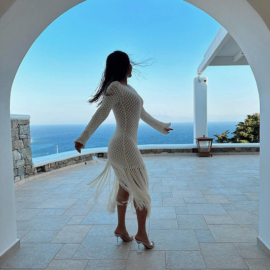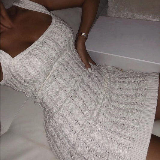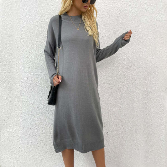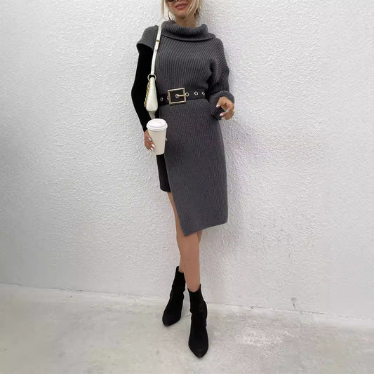Women's knitted dress with asymmetric design and high leg slits