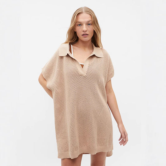 Women's knitted dress with button placket and practical breast pockets WW
