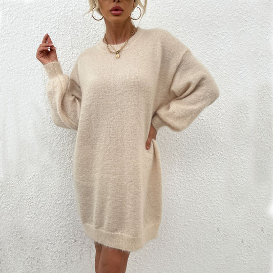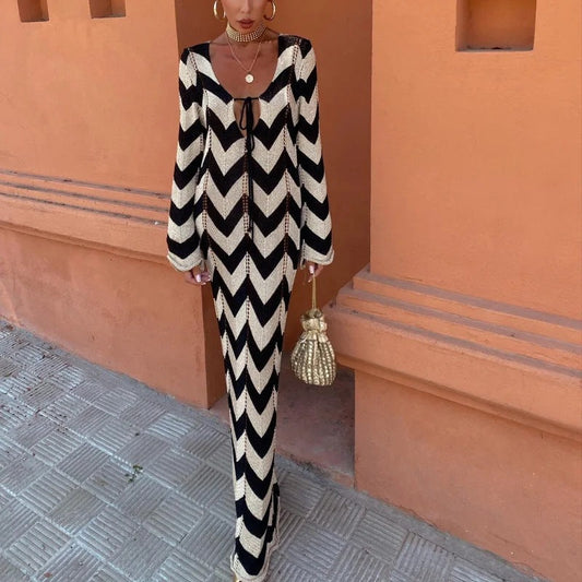 Women's knitted dress with adjustable belt and long sleeves WW