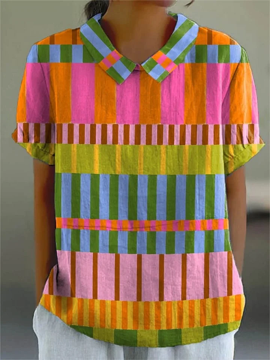 Selene - Women's Abstract Geometric Pattern Art Print Casual Cotton And Linen 3/4 Sleeve Shirt