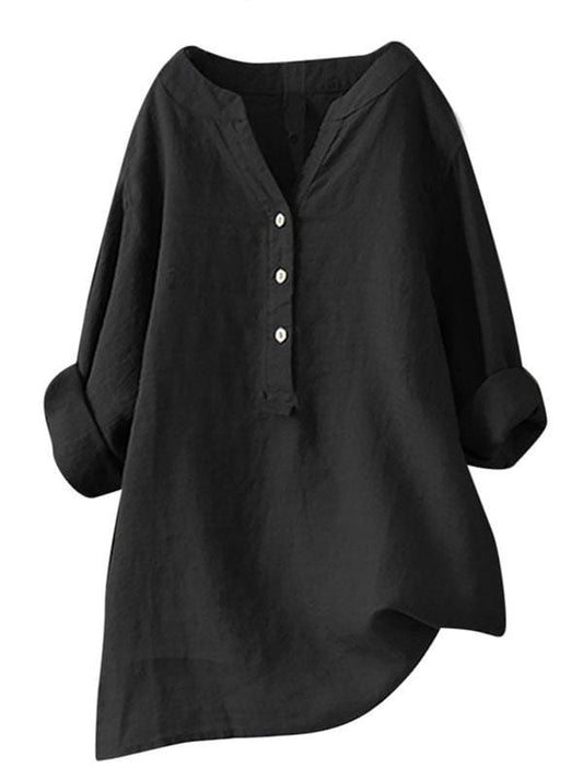 Sydney - Women's Vintage Floral Art Print Casual Cotton And Linen 3/4 Sleeve Shirt