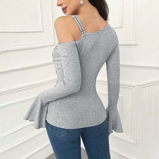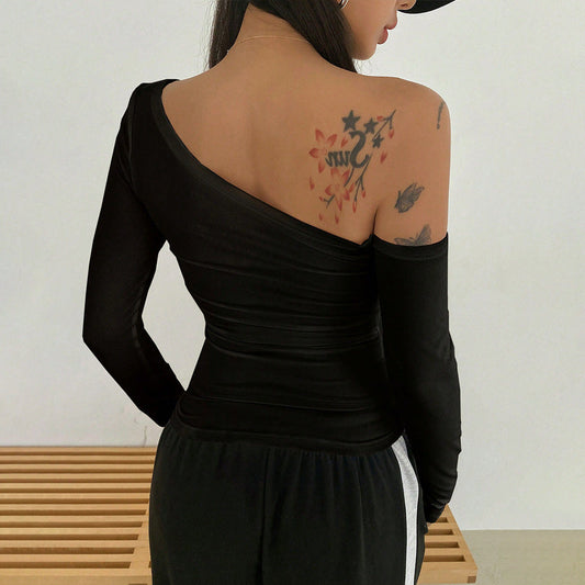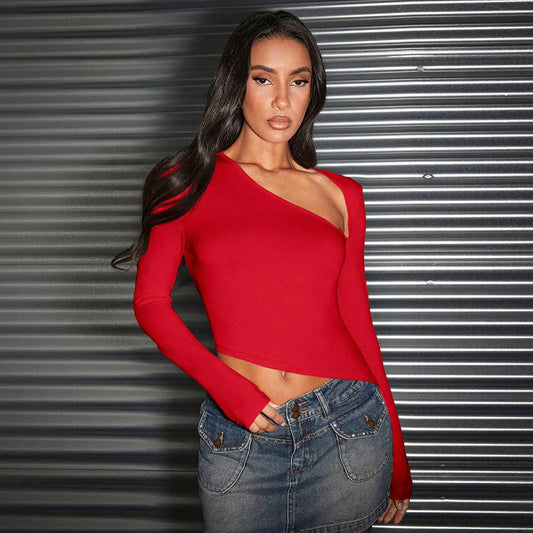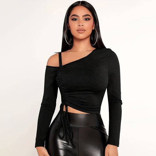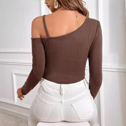 Women's asymmetric long-sleeved top with fashionable chain detail W&W