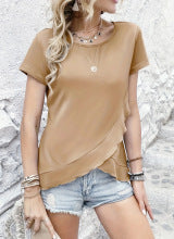 Women's asymmetric short-sleeved top with sophisticated hem WW