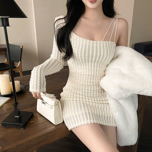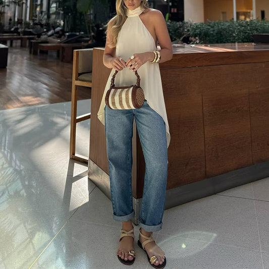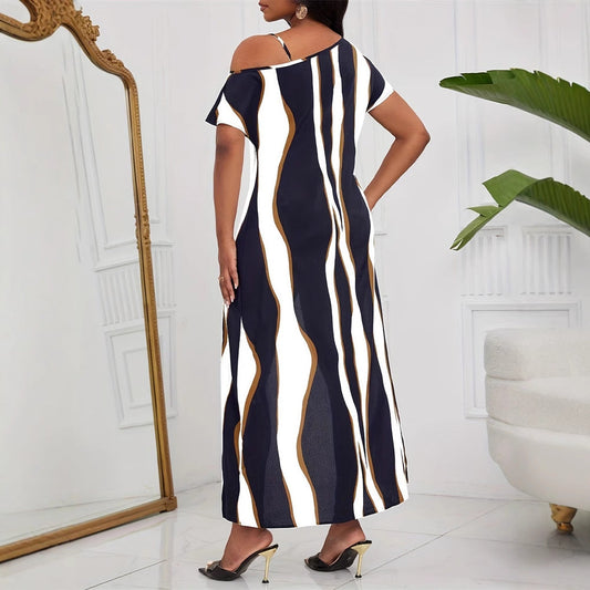 Women's asymmetric top with side slit and fashionable striped pattern W&W