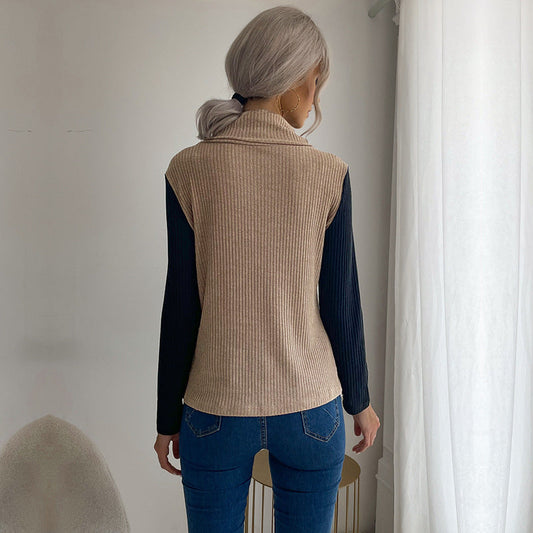 Women's asymmetric top with stand-up collar and flowing cut WW
