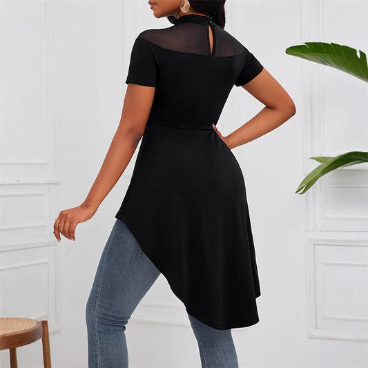 Women's asymmetric top with transparent inserts and flared cut W&W