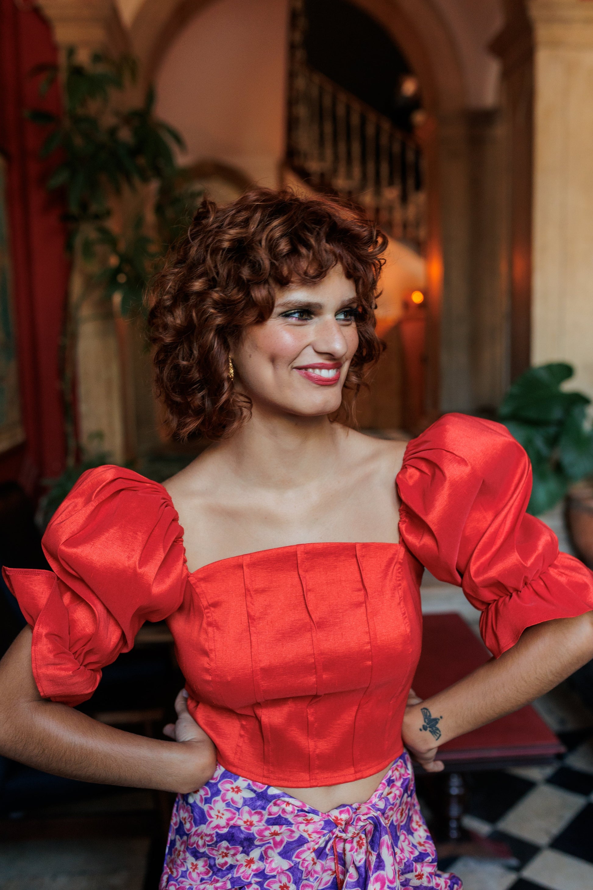 The BOGOTÁ top is one of our favorite pieces from Wolff. With its iconic sleeves and romantic shape, it goes with any festive look.