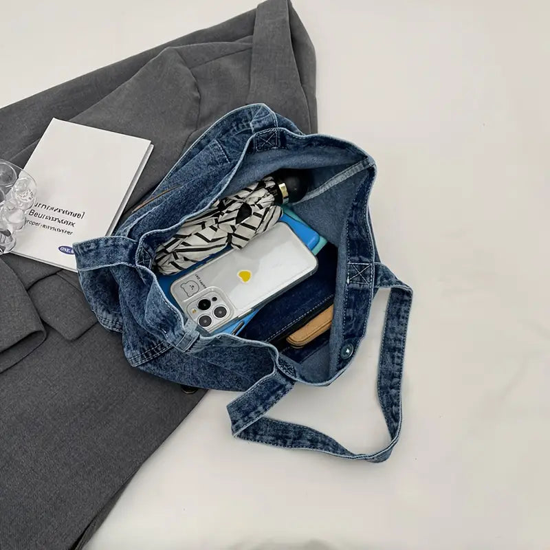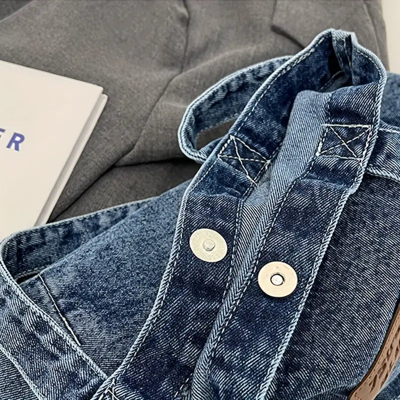 The Daina Canvas Shoulder Bag blends simplicity and practicality with a touch of casual chic. Designed with a spacious interior and lightweight construction, this denim solid handbag is perfect for everyday use, whether you're commuting or heading out for errands. Its versatile design and magnetic clasp ensure ease of use while adding a stylish flair to any outfit.