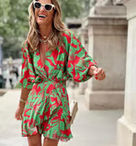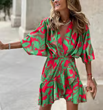 July - V Neck Ruffle Printed Mini Dress