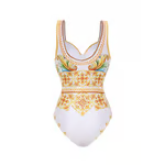 Vanessa - Sling Chest Support Golden Majolica Print One Piece Swimsuit Set