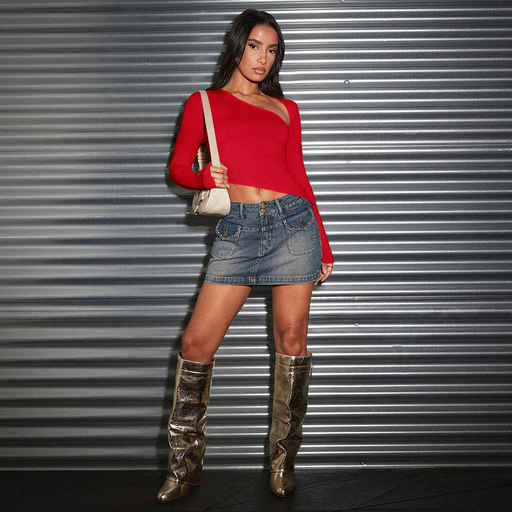 Women's asymmetric long-sleeved shirt with creative cut-out W&W